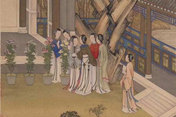 清代陳枚《月曼清游圖》之“重陽賞菊”局部