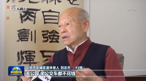 北京市東城區(qū)退休老人 劉志杰(93歲):原來90歲給200元(高齡津貼)現在給500了,去公園、坐公交車都不花錢,而且工資年年調整,我們得到這么多實惠非常感謝習近平總書記,我還要在總書記領導下健健康康多活些年。?
