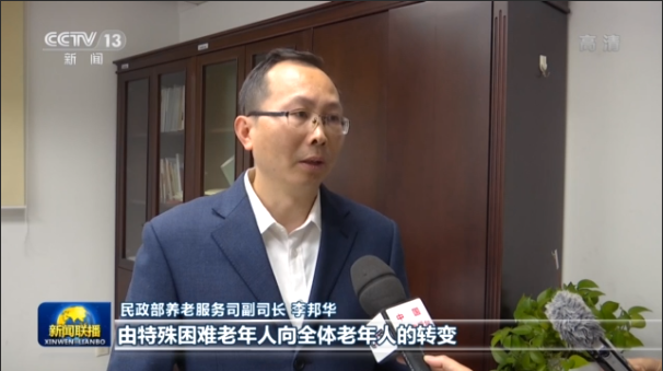 民政部養(yǎng)老服務司副司長 李邦華:“十三五”期間養(yǎng)老事業(yè)深入貫徹落實習近平總書記關于積極應對人口老齡化的科學論斷,養(yǎng)老服務發(fā)展實現了服務對象由特殊困難老年人向全體老年人的轉變,發(fā)展格局由政府舉辦向政府主導、全社會積極參與的轉變,為新時期養(yǎng)老服務的發(fā)展奠定了堅實的基礎。(總臺央視記者 項飛 白央 玉梅 維華 山西臺 陜西臺 青島臺 吉安臺?)