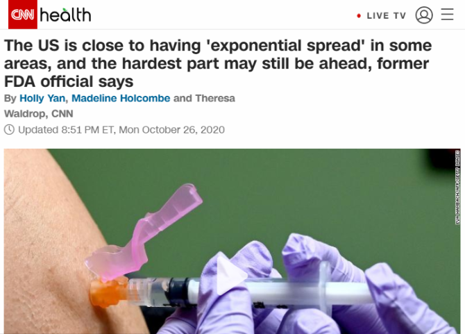 △CNN援引前FDA官員的說法稱,美國某些地區(qū)新增病例接近“指數(shù)級(jí)增長”,但最困難的情況可能還在后面