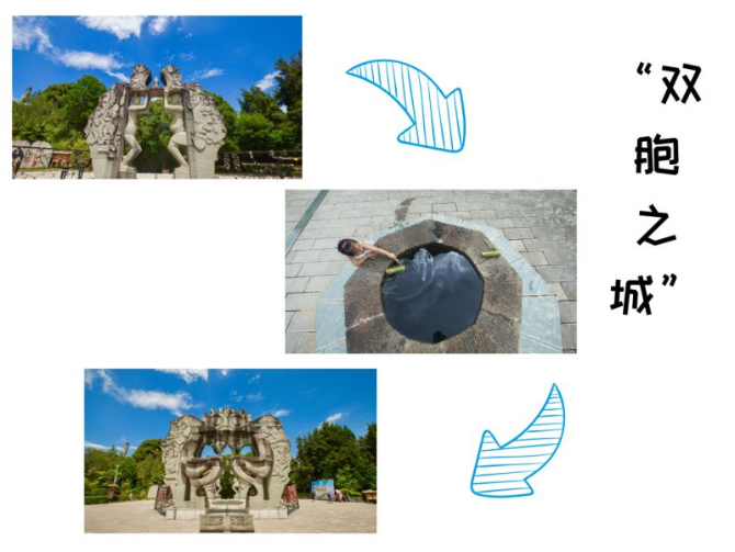 在墨江,全縣有1200多對雙胞胎,生活在北回歸線上的就有600多對。除此之外,在動(dòng)植物中也存在著神奇的雙生現(xiàn)象。雙子星廣場上的主體雕塑是一對年輕的哈尼族夫妻,左手邊的哈尼婦女肚子突起。夫妻倆彎曲雙腿、手持貢品,他們正向天神祈求,保佑他們的雙胞胎平安降生。