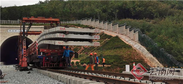 中老鐵路國內(nèi)玉磨段啟動鋪軌作業(yè)以來,中鐵一局玉磨項目部嚴(yán)格落實中國鐵路昆明局集團滇南鐵路建設(shè)指揮部工期要求,根據(jù)玉磨鐵路鋪架施工特點,分別在研和、寧洱、磨憨設(shè)置了3個鋪架基地。鋪軌采取機械為主、人工為輔,大干快上,多點開花的施工模式,嚴(yán)格按照節(jié)點工期目標(biāo)要求有序推進。