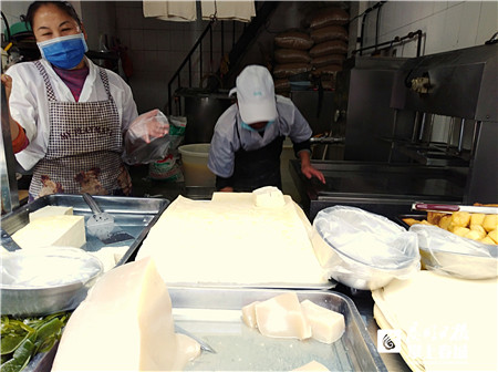 11月4日,有市民買菜時發(fā)現(xiàn),西山區(qū)和平農(nóng)貿(mào)糧油海鮮綜合市場已有兩家豆腐作坊,把新鮮豆腐的價格從5元/千克上調(diào)到6元/千克。