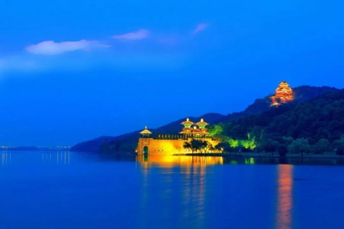 ▲夜色中的東湖聽濤景區(qū)