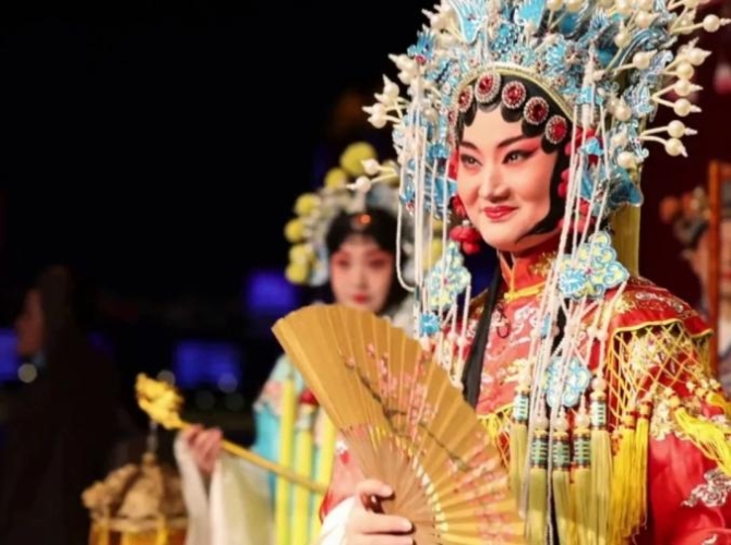▲鳳冠霞帔的漢劇表演
