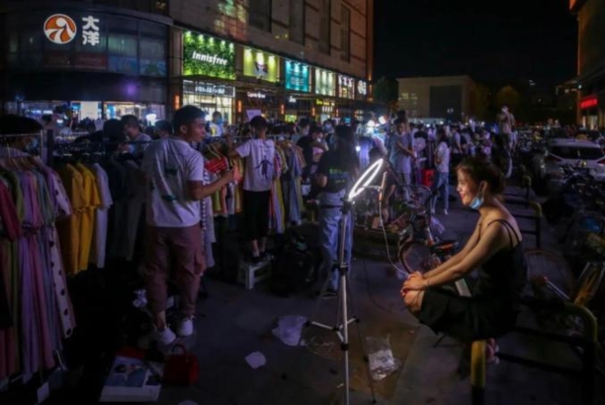 ▲一邊直播一邊練攤的青春