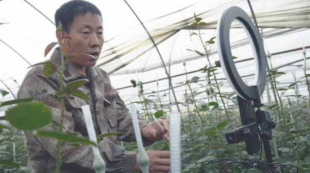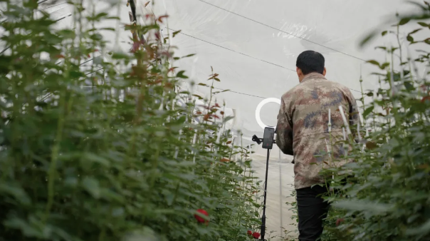 每次去田間地頭,他總會架起三腳架、裝好手機,向粉絲展示一朵好的鮮花是怎么種出來的。