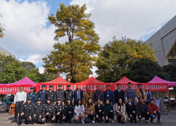 昆明信息港訊 為進(jìn)一步推進(jìn)法治宣傳教育,強(qiáng)化校園安全管理,提高廣大師生的法律意識(shí)和自我保護(hù)能力,落實(shí)好10月15日平安校園共建聯(lián)席會(huì)議的要求,11月6日,呈貢區(qū)委政法委組織區(qū)法院、區(qū)檢察院、市公安局呈貢分局、區(qū)司法局、團(tuán)區(qū)委、吳家營(yíng)街道辦事處共40余名黨員、團(tuán)員普法志愿者在云南師范大學(xué)呈貢校區(qū)聯(lián)合開展呈貢區(qū)普法志愿者法治文化基層行活動(dòng)。