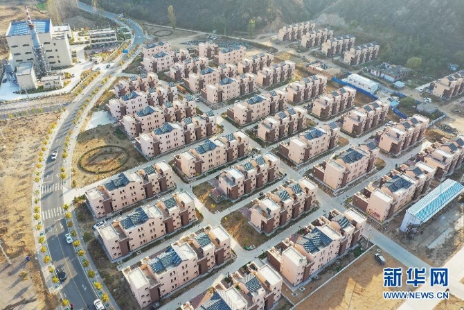 河北省阜平縣史家寨易地扶貧搬遷安置區(qū)(10月29日攝,無人機(jī)照片)。 新華社記者 朱旭東 攝
