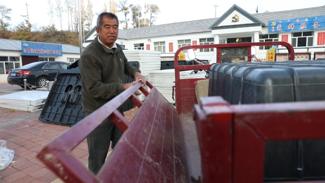 △近日,老鄭在忙著幫村民運送衛(wèi)生廁所設備。