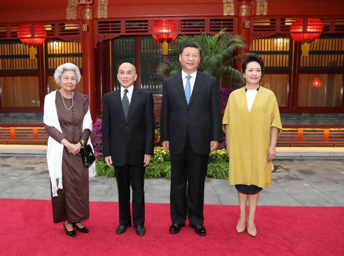 2016年,習(xí)近平主席對(duì)柬埔寨進(jìn)行國(guó)事訪問(wèn),柬方以罕見(jiàn)高規(guī)格接待。一般只擺放國(guó)王畫(huà)像的柬埔寨王宮外廣場(chǎng),并排矗立著習(xí)近平主席和柬埔寨國(guó)王西哈莫尼的巨幅畫(huà)像。習(xí)近平主席前往西哈努克太皇紀(jì)念雕像敬獻(xiàn)花籃,莫尼列太后臨時(shí)決定親自陪同;西哈努克太皇生前常坐的椅子,莫尼列太后特意請(qǐng)習(xí)近平主席在椅子上就座。
