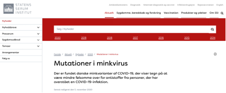 丹麥血清研究所報(bào)告,在3個(gè)養(yǎng)殖場發(fā)現(xiàn)“貂變異病毒”由貂傳人。這是里程碑式的發(fā)現(xiàn)。