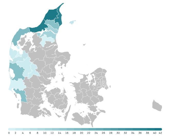 △丹麥?zhǔn)芨腥攫B(yǎng)殖場所在區(qū)域