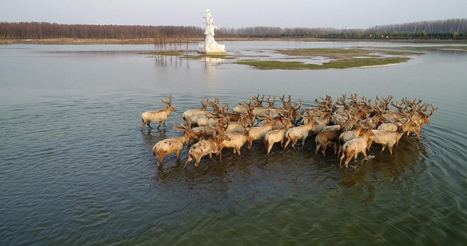 近年來,我國野生動物保護法律法規(guī)體系逐步完善,棲息地條件明顯改善,瀕危物種拯救與保護工作成效顯著,以麋鹿為代表的我國特有物種種群擴大呈現(xiàn)出良好態(tài)勢。目前我國已在北京南海子、江蘇大豐、湖北石首分別建立了三大保護種群,僅江蘇大豐麋鹿國家級自然保護區(qū)麋鹿種群數(shù)量就從1986年的39只發(fā)展至5681只,其中野外麋鹿種群數(shù)量1820只,基本實現(xiàn)了恢復野生麋鹿種群的目標。