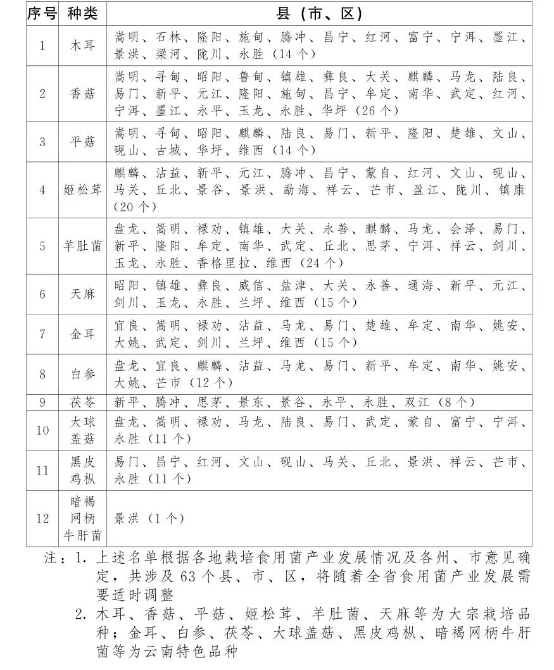 2.高原特色栽培食用菌基地縣名單
