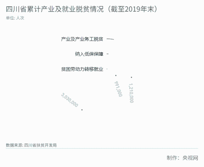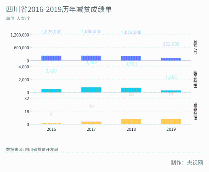截至2019年底,全省貧困縣總數(shù)降至7個,貧困村降至300個,貧困人口減少至20萬人,貧困發(fā)生率下降至0.3%。2016—2019年,在國家對省級黨委和政府扶貧開發(fā)工作成效考核中,四川連續(xù)四年取得好成績。