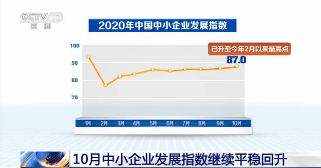 中國中小企業(yè)協(xié)會(huì)昨天(10日)發(fā)布數(shù)據(jù)顯示,10月中國中小企業(yè)發(fā)展指數(shù)為87.0,比9月上升0.1個(gè)點(diǎn),已升至今年2月以來最高點(diǎn)。