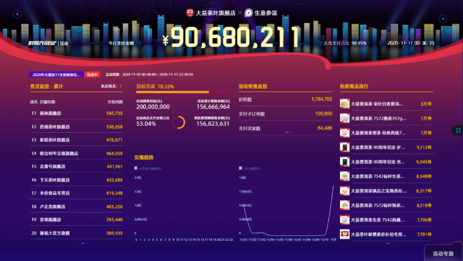 昨晚零點,本年度雙11“大戰(zhàn)”結束,大益各項“戰(zhàn)績”出爐,再次刷新茶行業(yè)里程碑式記錄!大益茶官方平臺全網銷售額突破2.56億!