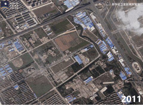 進(jìn)博會(huì)主場(chǎng)館國(guó)家會(huì)展中心(上海)2011年至2020年的衛(wèi)星動(dòng)圖。