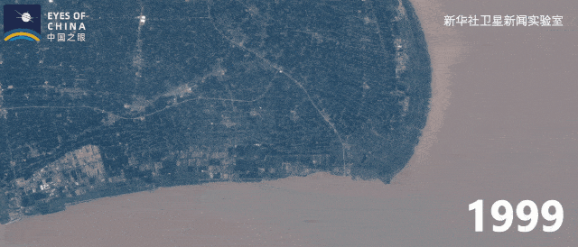 上海浦東新區(qū)臨港地區(qū)1999年至2019年的衛(wèi)星動(dòng)圖。