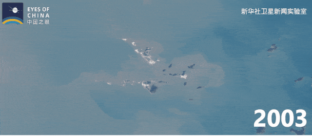 上海洋山港2003年至2020年的衛(wèi)星動(dòng)圖。