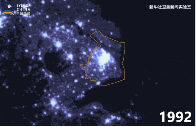 上海市1992年至2019年衛(wèi)星夜光動(dòng)圖。