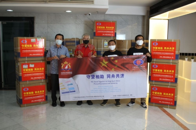 廣西企業(yè)向印尼捐贈口罩。受訪者供圖