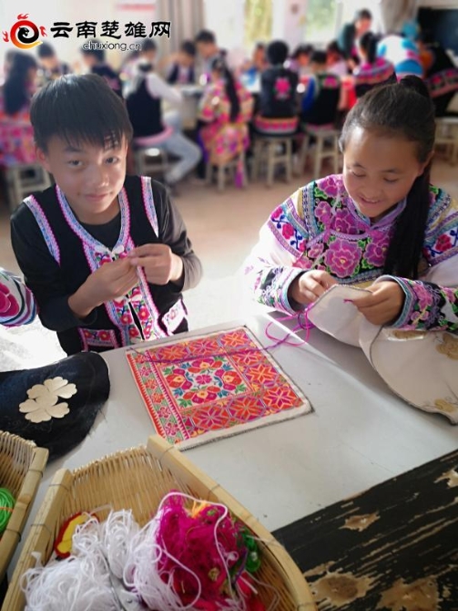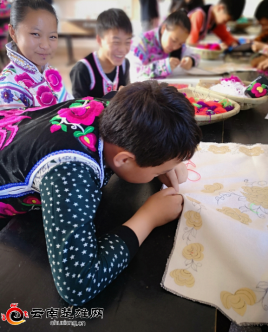 校園傳承和弘揚(yáng)彝繡文化,使一批彝族學(xué)生在學(xué)好課堂文化知識(shí)的同時(shí),更加了解了彝繡文化內(nèi)涵的厚重歷史,彝家娃娃憑著自己的想象力,繡出了百草嶺山上的馬纓花、杜鵑花、山茶花……創(chuàng)作出了熱愛(ài)本民族、本土彝繡的大夢(mèng)想。