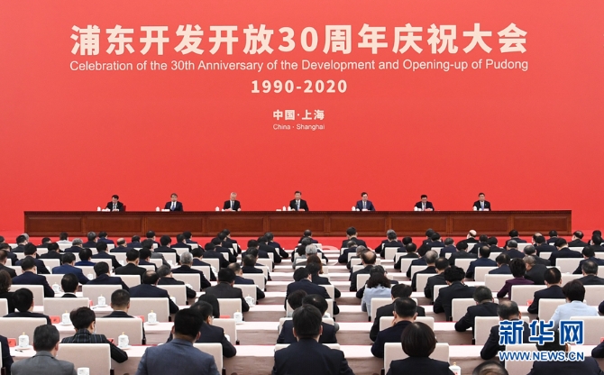 11月12日,浦東開(kāi)發(fā)開(kāi)放30周年慶祝大會(huì)在上海市舉行。中共中央總書記、國(guó)家主席、中央軍委主席習(xí)近平在會(huì)上發(fā)表重要講話。新華社記者 翟健嵐 攝