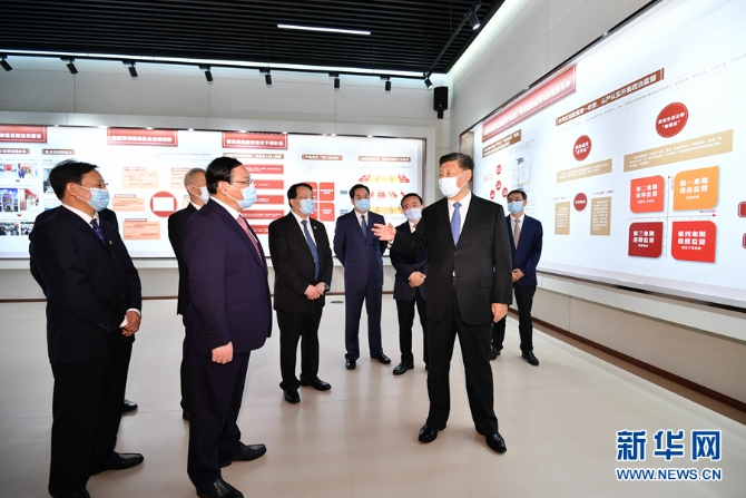 慶祝大會(huì)后,總書記來(lái)到浦東展覽館,參觀“在國(guó)家戰(zhàn)略的引領(lǐng)下——浦東開(kāi)發(fā)開(kāi)放30周年主題展”。