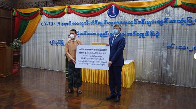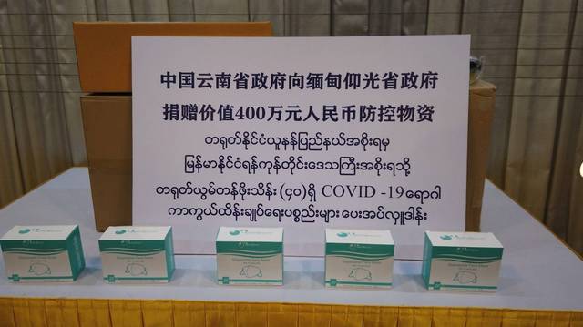 11月16日,云南省向仰光省捐贈防控物資儀式在仰光省政府舉行。此次云南省向仰光省捐贈了包括呼吸機(jī)、防護(hù)服、口罩、眼罩、面罩等10類防控物資,價值400萬元人民幣。