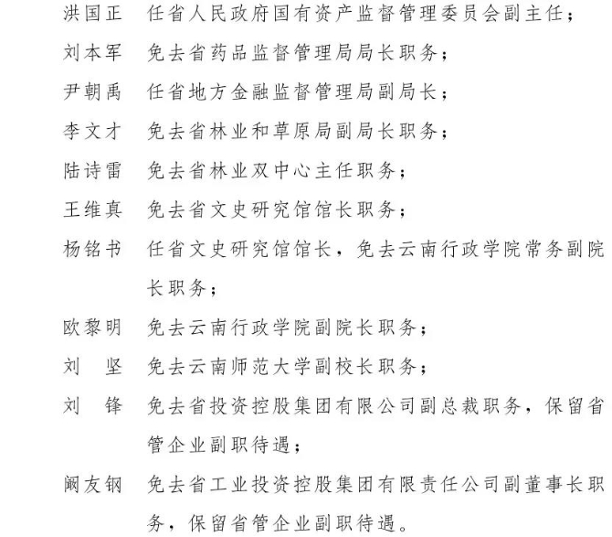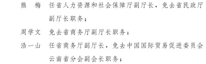 昆明信息港訊 近日,云南省人民政府網(wǎng)站發(fā)布19名干部任免職通知,具體如下: