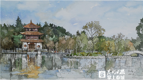 昆明信息港訊(昆明日報 全媒體記者馬海龍) 80年代的翠湖、夏日午后的大觀樓、碧水藍(lán)天的海埂大壩...一幅幅鋼筆淡彩、紙本水墨的繪畫作品,勾起了在場很多“老昆明人”的記憶。11月15日,蔣凌、劉曉雙個展“幸福的繪畫”在昆明青云街文達(dá)畫廊展出,鋼筆淡彩下的昆明建筑、獨特造型的紙本水墨人物,讓到場觀展的市民感受到兩位畫家對美好事物的留戀、對昆明的熱愛。