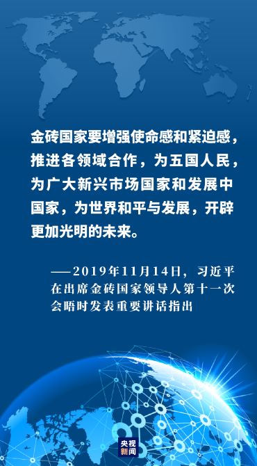 面對(duì)百年未有之大變局,習(xí)近平呼吁金磚國(guó)家“順應(yīng)時(shí)代潮流,回應(yīng)人民呼聲,展現(xiàn)應(yīng)有的責(zé)任擔(dān)當(dāng),在追求發(fā)展道路上矢志不移,在團(tuán)結(jié)合作歷程中攜手奮進(jìn),為人民謀幸福,為世界謀發(fā)展”。