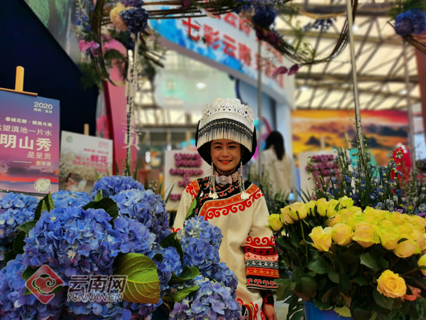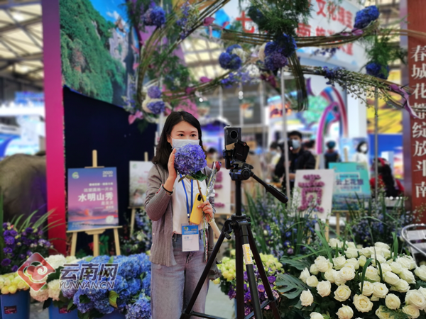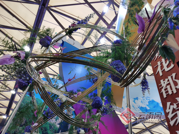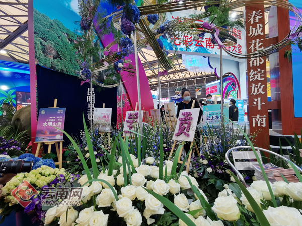 在本屆旅交會上,呈貢是最為別致的存在,花都特色彰顯得淋漓盡致。一萬多枝玫瑰、繡球、紫掌盡情展現(xiàn)著呈貢的風(fēng)情,藍色的基調(diào),象征著呈貢清澈的藍天,還有濱湖之城的浪漫。