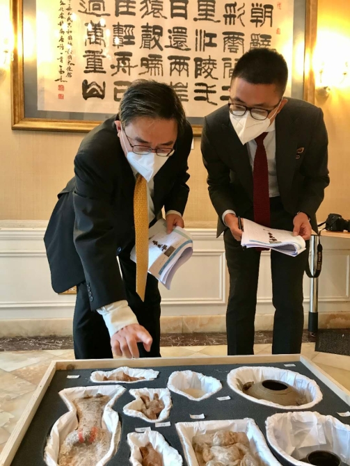 2020年1月,倫敦大都會警察局聯(lián)系我駐英使館,告知因購買人去向不明,且扣押時間超過追訴期,該批涉案文物被界定為無主物,主動提出希望將該批文物歸還中國政府。國家文物局立即組織重啟追索機制,擬定追索方案,組織專家鑒定,形成追索清單,基于聯(lián)合國教科文組織《關(guān)于禁止和防止非法進出口文化財產(chǎn)和非法轉(zhuǎn)讓其所有權(quán)的方法的公約》(以下簡稱“1970年公約”),向英方發(fā)出追索函,代表中國政府正式提出返還要求。倫敦大都會警察局同意全部歸還。10月19日,我駐英國使館專人護送文物至倫敦希思羅國際機場,文物啟運回國。