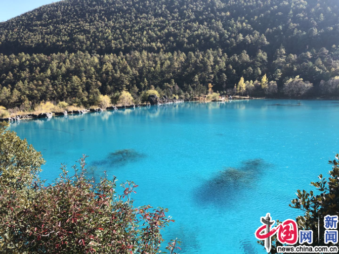 藍(lán)月谷風(fēng)景區(qū),湖水湛藍(lán)清澈。玉龍縣依托獨(dú)特的自然資源稟賦,走出“靠山吃山”新路子。中國(guó)網(wǎng)記者 嚴(yán)星/攝