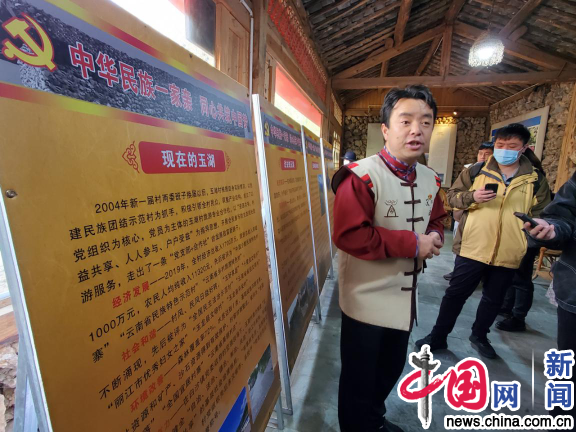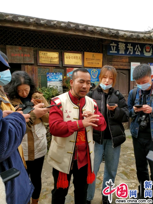 玉湖村黨總支書記兼村委會(huì)主任和旺盛介紹情況。中國(guó)網(wǎng)記者嚴(yán)星/攝