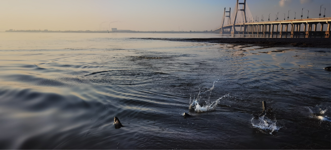 長江里的魚兒多了起來,時而躍出江面。(卑新建 攝)