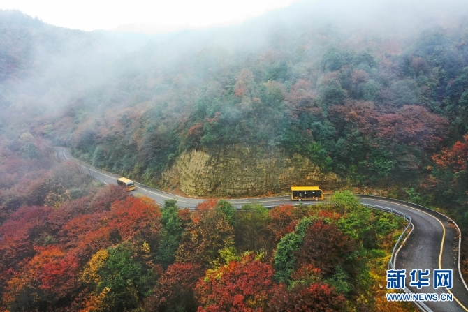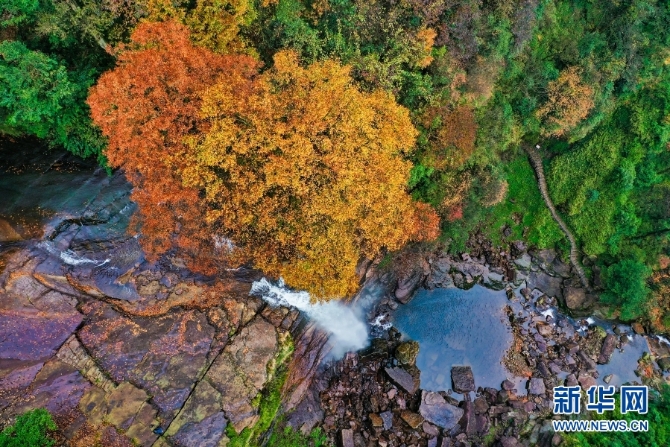 漫步在林中小道,耳聞山泉叮咚,映入眼簾的是一層層由淺入深、絢麗程度不同的紅,一路上落英繽紛,宛如來到了人間仙境。無論從哪一個(gè)角度捕捉都自成一格,吸引了眾多國內(nèi)外旅游攝影愛好者和戶外活動(dòng)愛好者。(新華網(wǎng) 航拍:左濱洪)