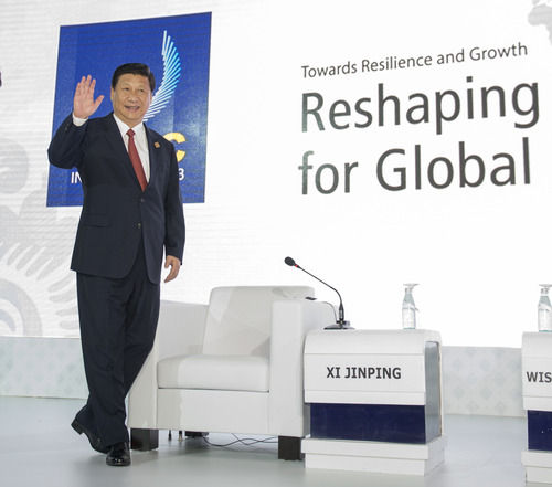 2013年10月7日,國家主席習(xí)近平在印度尼西亞巴厘島出席亞太經(jīng)合組織工商領(lǐng)導(dǎo)人峰會(huì),并發(fā)表《深化改革開放共創(chuàng)美好亞太》的重要演講。新華社記者 李學(xué)仁 攝