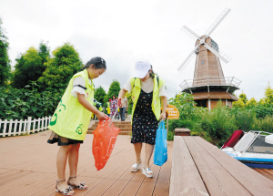 志愿者進行環(huán)境衛(wèi)生保潔。記者周密/攝