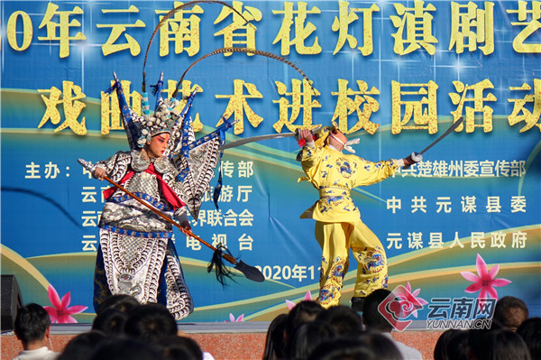 11月19日,云南省花燈滇劇藝術(shù)周走進(jìn)元謀縣第一中學(xué),云南文化藝術(shù)職業(yè)學(xué)校帶去了花燈、滇劇、流行歌曲等內(nèi)容豐富的精彩節(jié)目,與全校1700余名師生互動(dòng),讓學(xué)生切身感受花燈滇劇的魅力,喚起了學(xué)生了解、熟悉、熱愛戲曲的熱情。