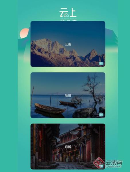 云南“云展廳”的入口處,一個(gè)立體的地形沙盤勾勒出云南的山川地貌,高原起伏,河谷密布,一塊神奇而多樣的土地,讓人印象深刻。點(diǎn)擊“VR云南”上面的交互熱點(diǎn),就可以看到“七彩云南旅游天堂”的宣傳片和16州市著名景點(diǎn)的風(fēng)光片。