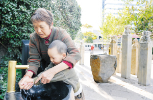 日前,記者在西山區(qū)碧雞廣場(chǎng)西門(mén)看到,一處大大小小、高低錯(cuò)落的石獅柱子圍著兩大一小三個(gè)洗手臺(tái),周邊都是假山綠植。洗手臺(tái)上設(shè)置有感應(yīng)出水,即用即停,不會(huì)造成水資源浪費(fèi),同時(shí)還擺放著洗手液。不少來(lái)此鍛煉散步的市民在運(yùn)動(dòng)后,都會(huì)選擇來(lái)此洗洗手。(昆明日?qǐng)?bào) 記者劉凱達(dá)攝影)