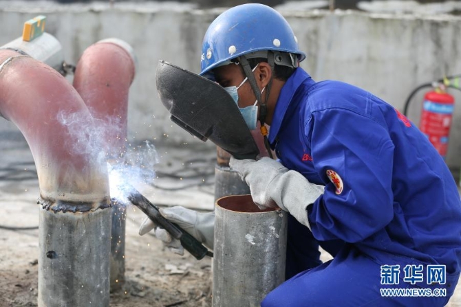 覺泰昂是正在接受項(xiàng)目組培訓(xùn)的當(dāng)?shù)毓と酥?。他剛來?xiàng)目組上班時僅是一名普通的安裝工,因?yàn)樗麑﹄姾父信d趣,又掌握一些基本的焊接知識,項(xiàng)目組的師傅就開始教他做些簡單的焊接工作。教覺泰昂電焊技能的師傅田志章說:“提前幫他調(diào)好尺寸,接好焊點(diǎn),每焊兩厘米左右就幫他檢查一下,一般的支架和管道焊接他已經(jīng)能做得很好?!?/p>