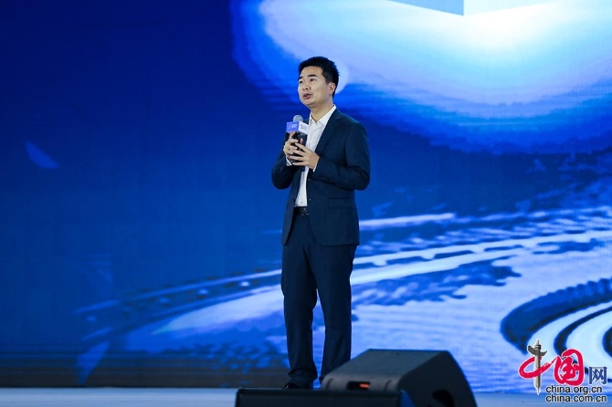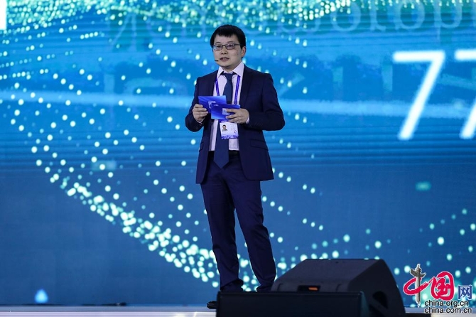 騰訊云副總裁、騰訊會議負責人吳祖榕作為“科技抗擊”專項成果代表,介紹疫情期間,騰訊會議在助力復工復產和產業(yè)恢復方面的經驗和做法。中國網記者 董寧 攝影