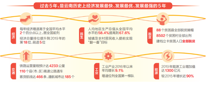 在即將過去的“十三五”期間,云南省經(jīng)濟發(fā)展不斷提速、民生福祉不斷提高、改革開放不斷深化、生態(tài)環(huán)境不斷改善,民族團結(jié)、邊疆穩(wěn)定的大好局面進一步鞏固。