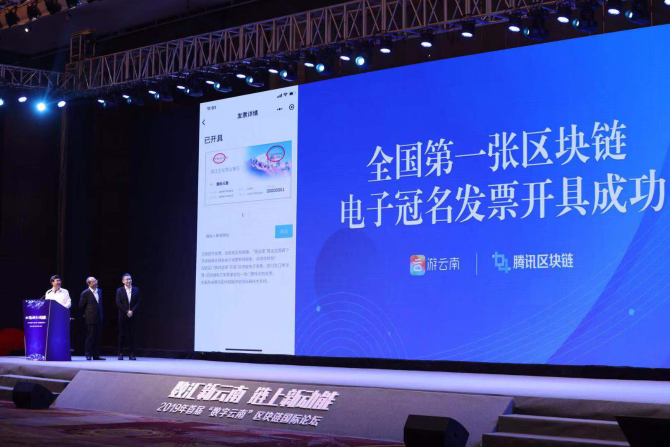 全國第一張區(qū)塊鏈電子冠名發(fā)票在云南開出。孫兵 攝