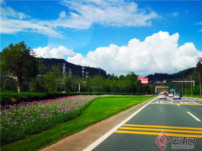 云南的高速公路上,路景、風景相得益彰,美不勝收。資料圖